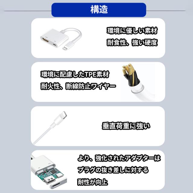 iPhone HDMI 変換アダプタ usb ライトニング Lighting 変換ケーブル 給電不要 iOS16対応 iOS12以上 アイフォン テレビ 接続 ケーブル 14 13 12 11 se XR XS Pro Max mini 充電しながら使える Lightning iPad モニター ミラーリング YouTube 変換 tv ゲーム 動画視聴 Digital AV変換アダプタ iPhone14 plus 13 x 8 7 6 abema iOS14 iOS15 iOS16 iOS17対応 HDMI変換 HDMI変換ケーブル ハブ ライトニングケーブル 設定不要 ミラーリング iphone hdmiケーブル iphone hdmi変換アダプター hdmi 変換アダプタ iphone テレビ 接続 ケーブル lightning hdmi 変換 ケーブル アイフォーン 同時 充電 在宅 リモート 会議 スマホ スマートフォン 携帯 携帯電話 音声 画面 動画 映像 コード 投影 出力ケーブル ミラーリング ケーブル ミラーリングケーブル 在宅ワーク テレワーク zoom 遠隔授業 テレビ会議 google meet リモートワーク 大画面 オンライン飲み会 リモート授業 Digital AVアダプタ AVアダプター プレゼン モニター ディスプレイ ゲーミングモニター TV プロジェクター 1080p 対応 hdmi 変換器 HDMI lightning変換