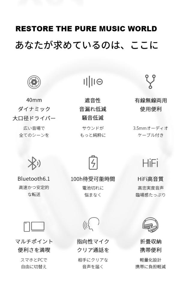ワイヤレスヘッドホン ヘッドセット Bluetooth6.1 超低遅延 自動ペアリング ノイズキャンセリング クリア通話 有線無線両用 USB充電 【PL保険加入済み製品・安心】