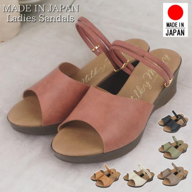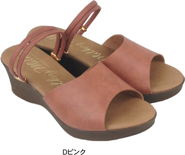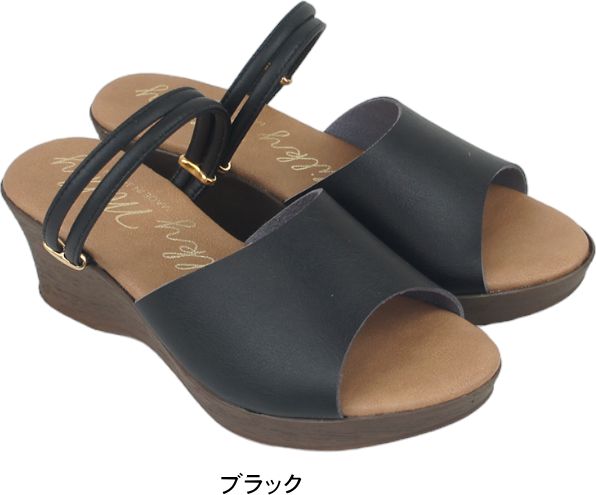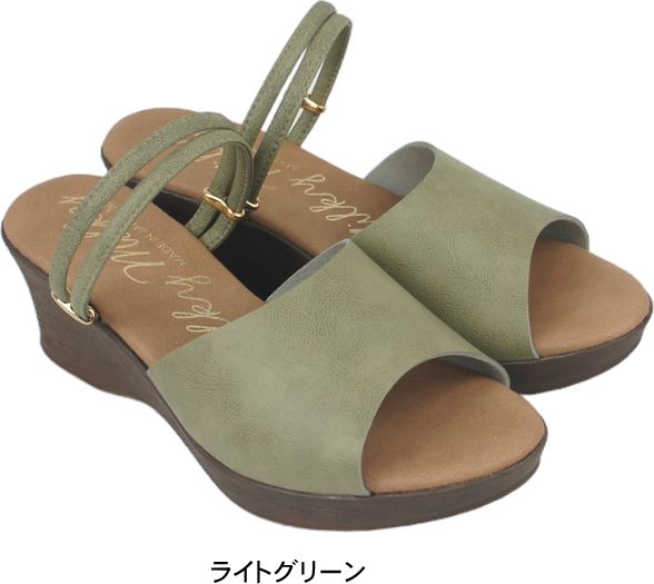 ミュールサンダル レディース ストラップ 日本製 ウエッジ ヒール ソール ぺたんこ フラット 痛くない やわらかい 軽い 夏 nc1332