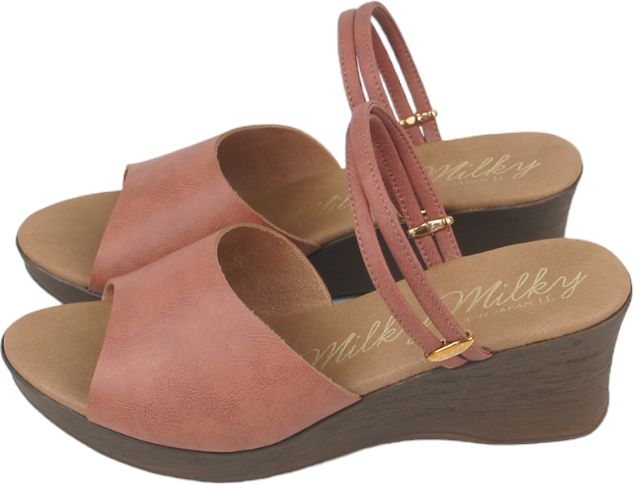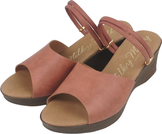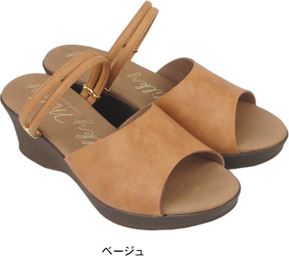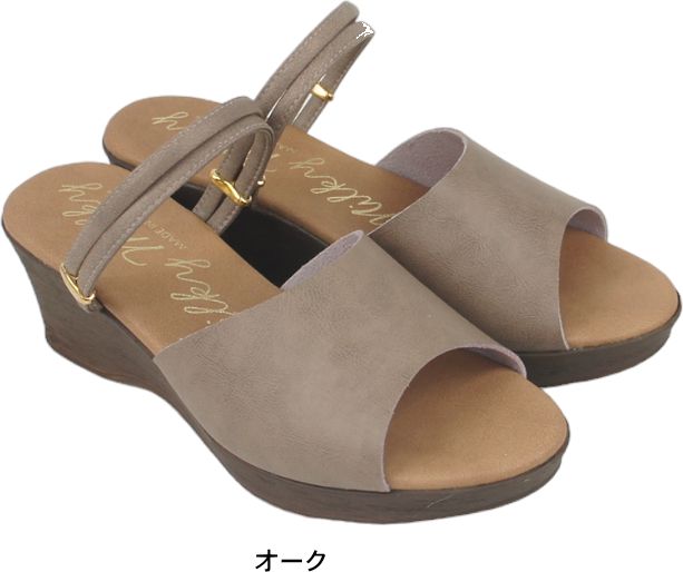 柔らかく肌触りの良い人工皮革のストラップでフィットして 歩きやすい。6cmのウェッジソールだから美脚効果も抜群。