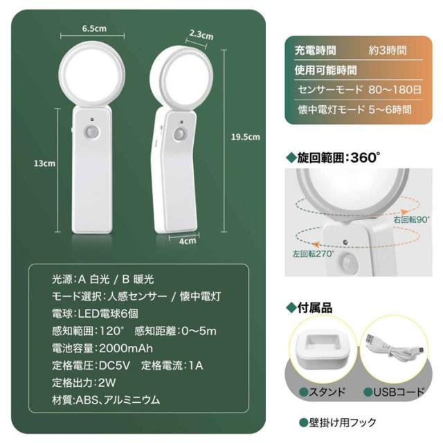 臨時対象外 送料無料センサーライト 屋内 人感センサー付き LED ライト ハンディライト usb 感知式 照明 スタンド 小型 玄関 クローゼット 廊下