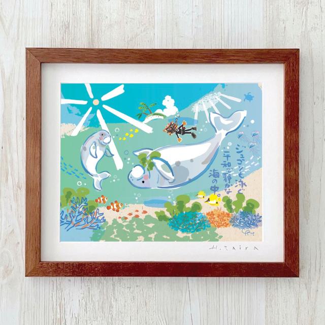 グラフィックアート 壁掛け おしゃれ 絵画 額付き 新築祝い 誕生日 プレゼント 島の彩 No.046 / 平和なジュゴンの海 Mサイズ