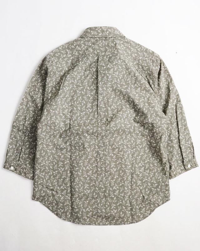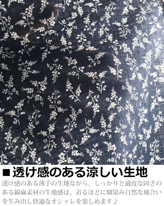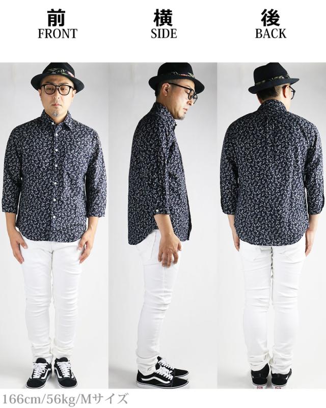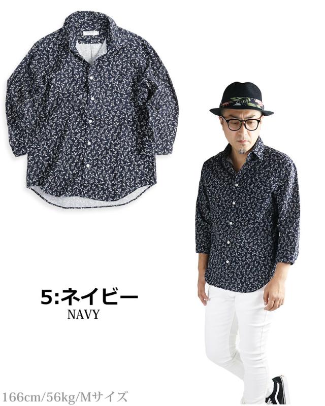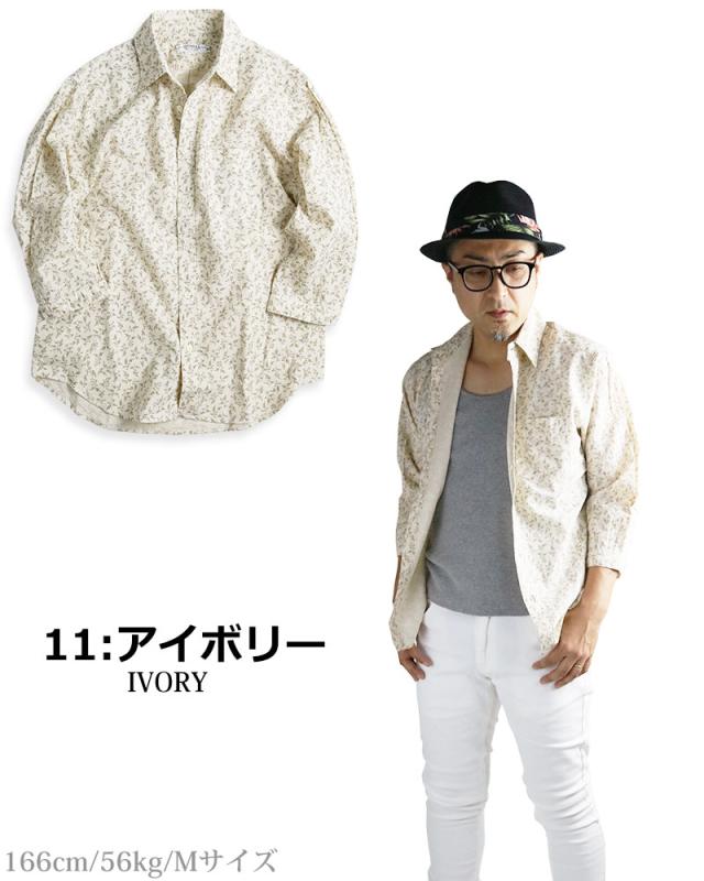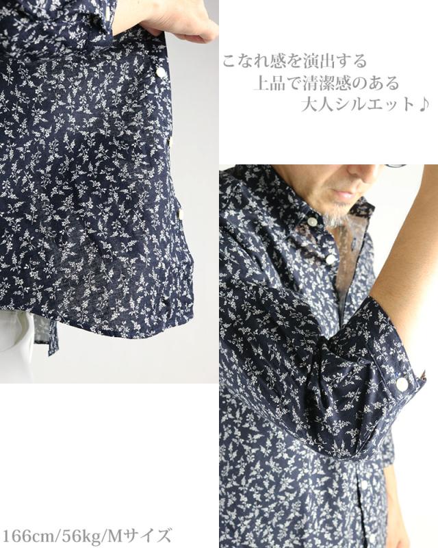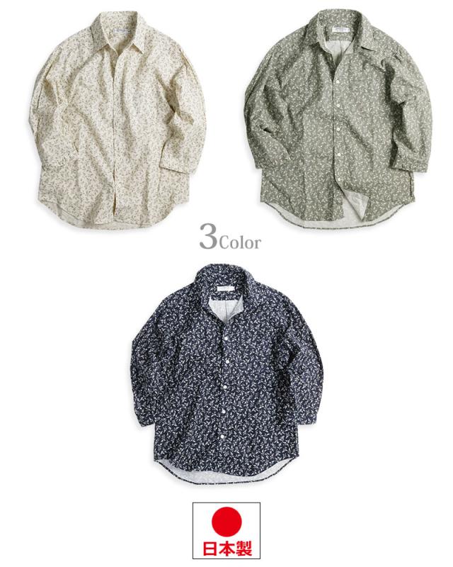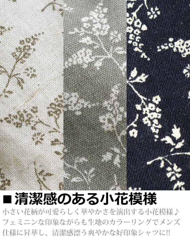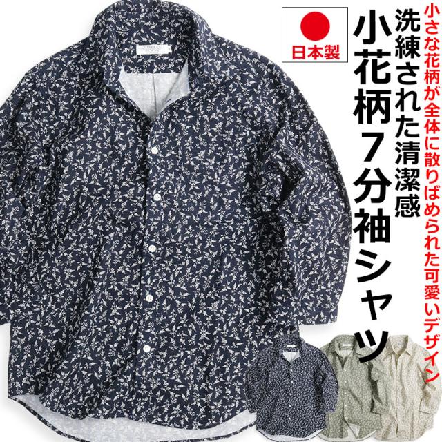 小花模様 小花柄 綿麻シャツ メンズ 日本製 7分袖 花柄 シャツ 七分袖 夏シャツ ネイビー グレー アイボリー