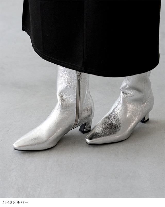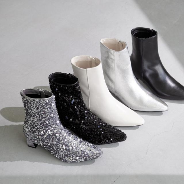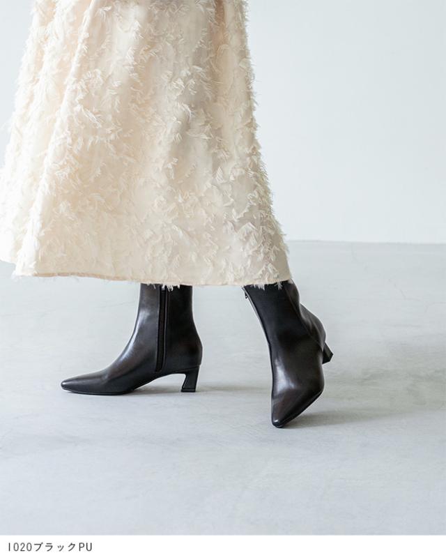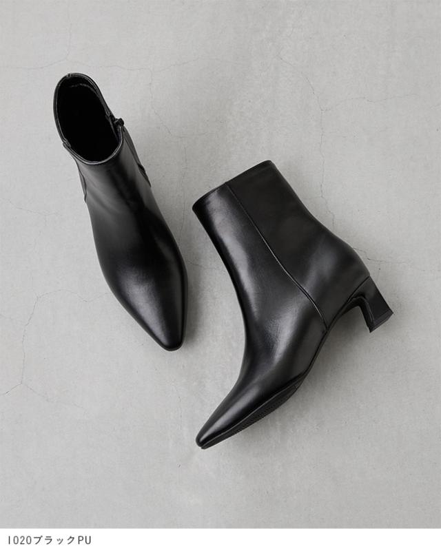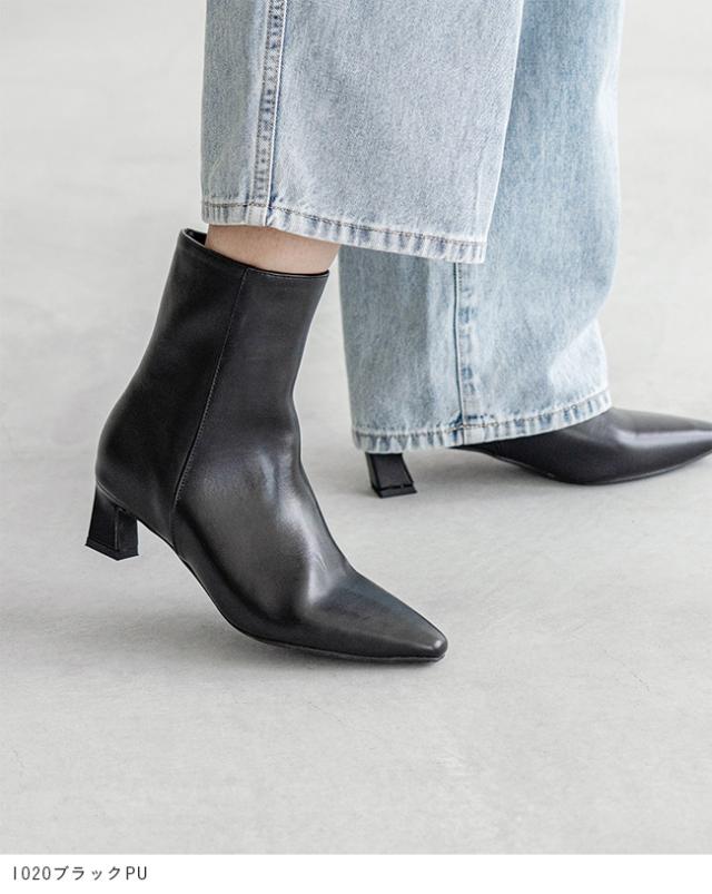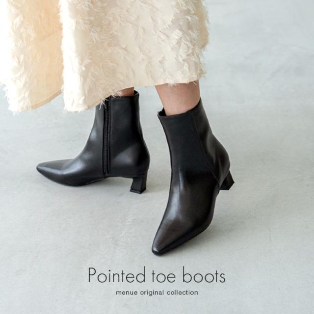 足首からつま先までのキレイなラインを実現するポインテッドトゥのショートブーツ。