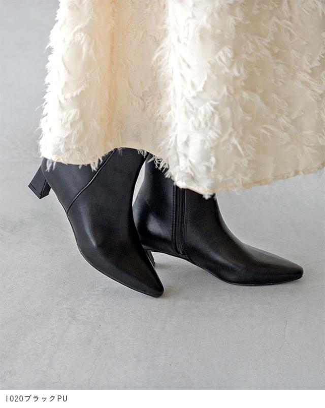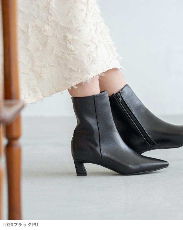 ブーツ ショートブーツ レディース デザインヒール ミドルヒール 痛くない 歩きやすい ポインテッドトゥ 防寒 送料無料