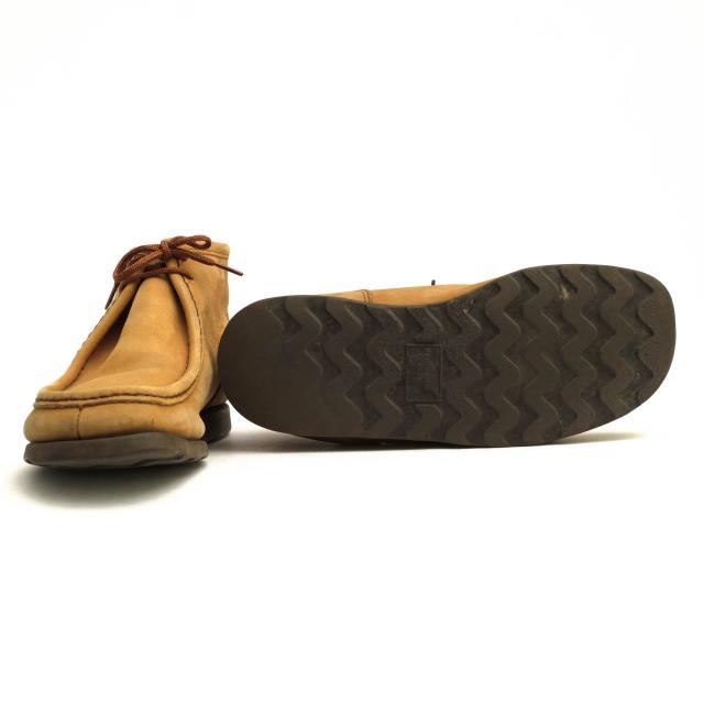 1995年にカントリーウォーカーシリーズとして発売されたワラビーモデル。シンプルなデザインで、足をゆったりと包むようなフィット感。ガムライト素材のビブラムソールを、シンプルなセメント製法で取り付けた軽量モデルで、ブラウンカラーのトラクショントレッドソールにヌバックレザーを採用しており、カントリーな雰囲気です。インソールは弾力性があるウレタン素材、幅の広いオブリックラストなので、歩行性能も抜群。