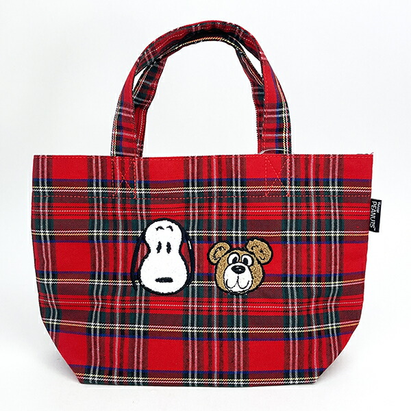 スヌーピー SNOOPY スヌーピー&ベア チェック ミニトート トートバッグ かばん レッド