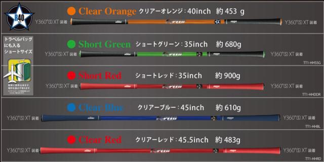 最初に軽い方(黒シール側)を持ちゆっくりとリズム良く、素振りしてください。