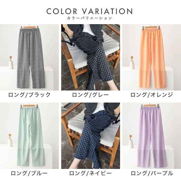 パンツ レディースパンツ ワイドパンツ ガウチョパンツ イージーパンツ パジャマパンツ ロングパンツ ハーフパンツ ショートパンツ ショーツ ボトムス ズボン ギンガムチェック ゆったり 体型カバー ウエストゴム 楽ちん 快適 薄手 通気性 ルームウェア ワンマイルウェア 部屋着 パジャマ 夏 女性 低身長 高身長 チェック おしゃれ きれいめ シンプル カジュアル 可愛い かわいい 大人 無地 ハイウエスト 美脚 脚長効果 20代 30代 40代 50代 黒 青 紺 紫 ブラック グレー オレンジ ブルー パープル
