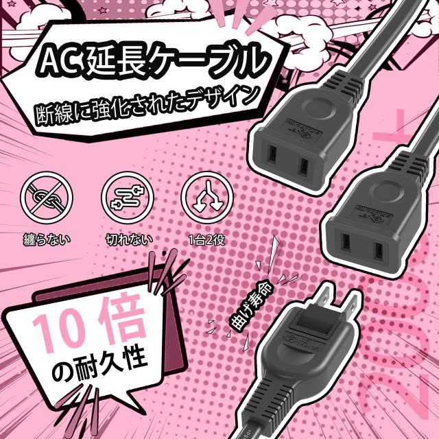 ● 幅の広いACアダプタの接続に最適なACアダプタ用電源延長コードです。