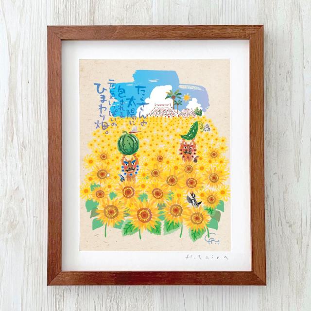 グラフィックアート 壁掛け おしゃれ 絵画 額付き 新築祝い 誕生日 プレゼント 島の彩 No.038 / ひまわり畑 Lサイズ