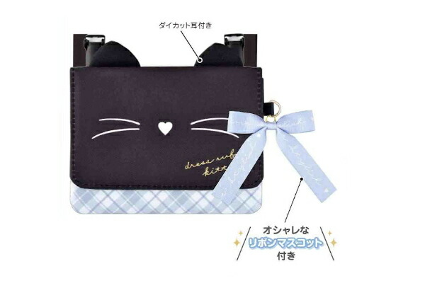 クラ125318 【オリジナル】ショルダー付きワイドポシェットポケット【リボンキトゥン】【ネコ】【動物】【アニマル】【ポーチ】【ケース】【小物入れ】【かばん】【カバン】【バッグ】【鞄】【斜め掛け】【ショルダー】【収納】【子供】【キッズ】【雑貨】【グッズ