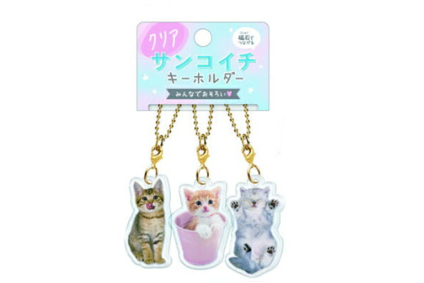 クラ125220 【オリジナル】クリアサンコイチキーホルダー【実写】【ねこ】【動物】【アニマル】【キーホルダー】【キーリング】【チャーム】【鍵】【友達】【フレンズ】【ペア】【お揃い】【おそろ】【雑貨】【グッズ】【かわいい】