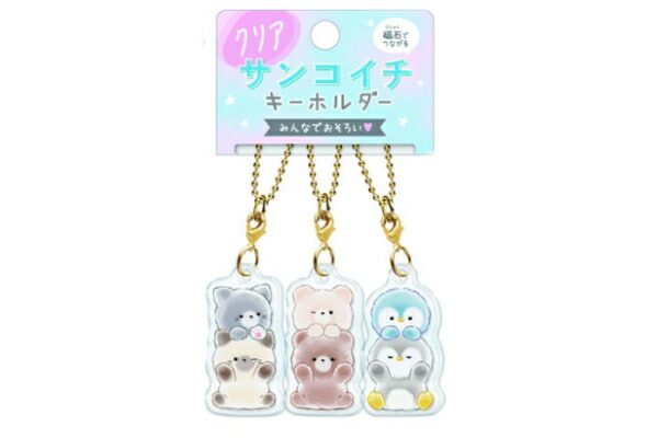 クラ124837 【オリジナル】クリアサンコイチキーホルダー【のっかり】【たろちゃんず】【動物】【アニマル】【キーホルダー】【キーリング】【チャーム】【鍵】【友達】【フレンズ】【ペア】【お揃い】【おそろ】【雑貨】【グッズ】【かわいい】