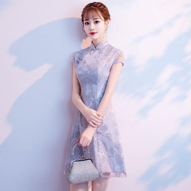 キャバドレスチャイナドレス夏秋2024新品グレーショートレースワンピース女性中国風チャイナドレスドレス