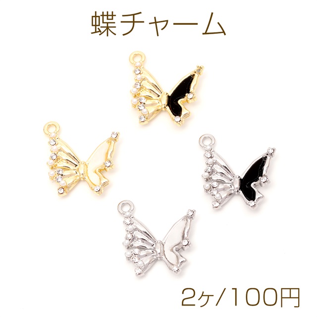 蝶チャーム バタフライチャーム 樹脂チャーム メタルチャーム パールとラインストーン付き 1カン付き 約19×20mm(2ヶ)