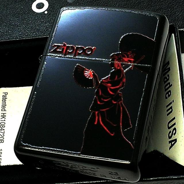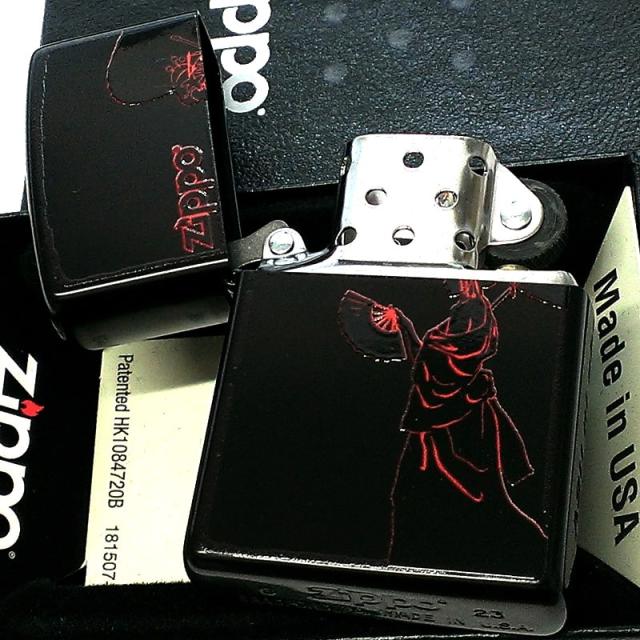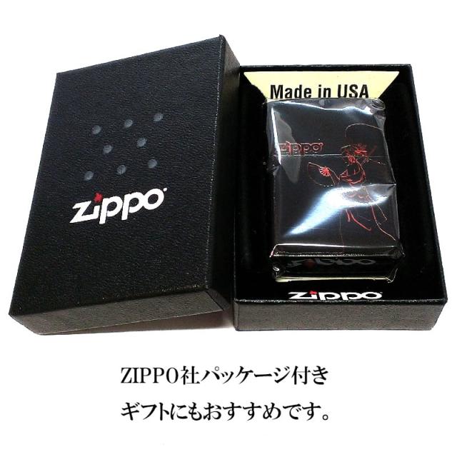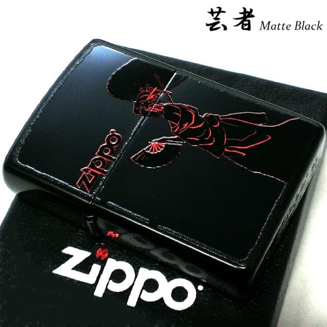 ZIPPO 和柄 マットブラック ロゴ ジッポ ライター 芸者 かっこいい 艶消し 赤黒 日本 和風 女性 レッド レディース メンズ プレゼント