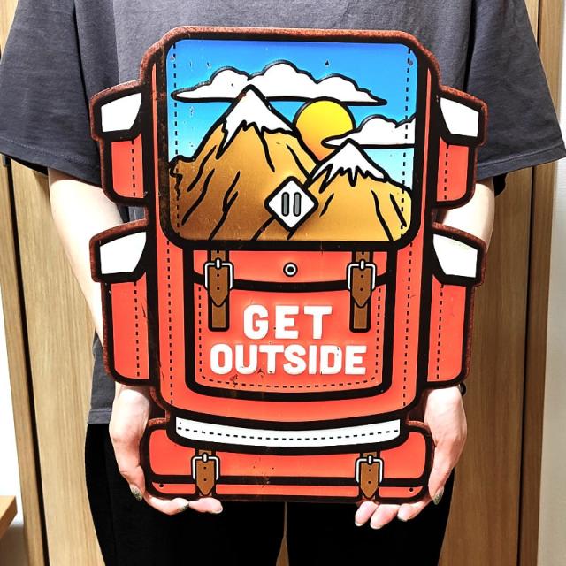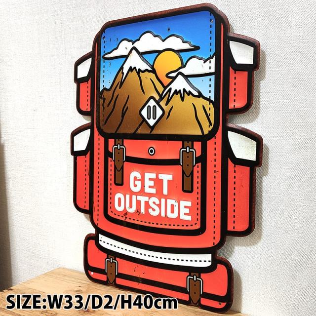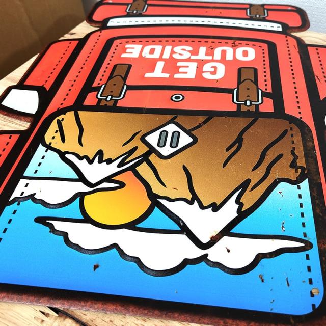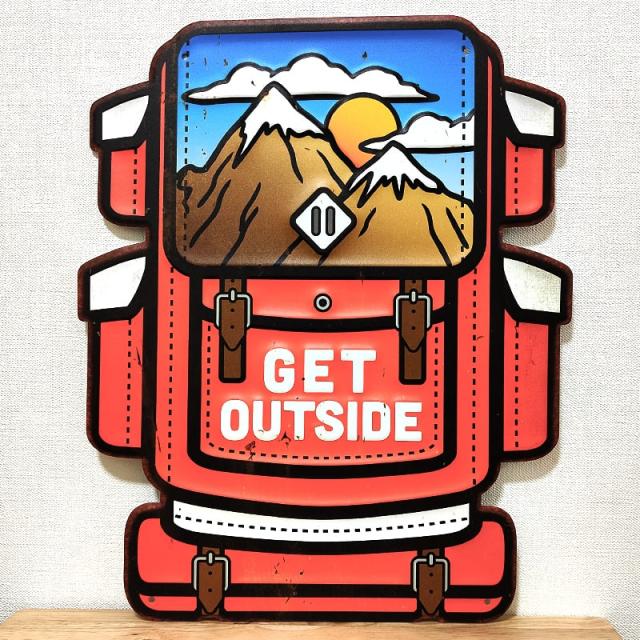 ブリキ看板 おしゃれ GET OUTSIDE アンティークプレート リュック アメリカン レトロ調 かわいい 壁飾り 雑貨 インテリア