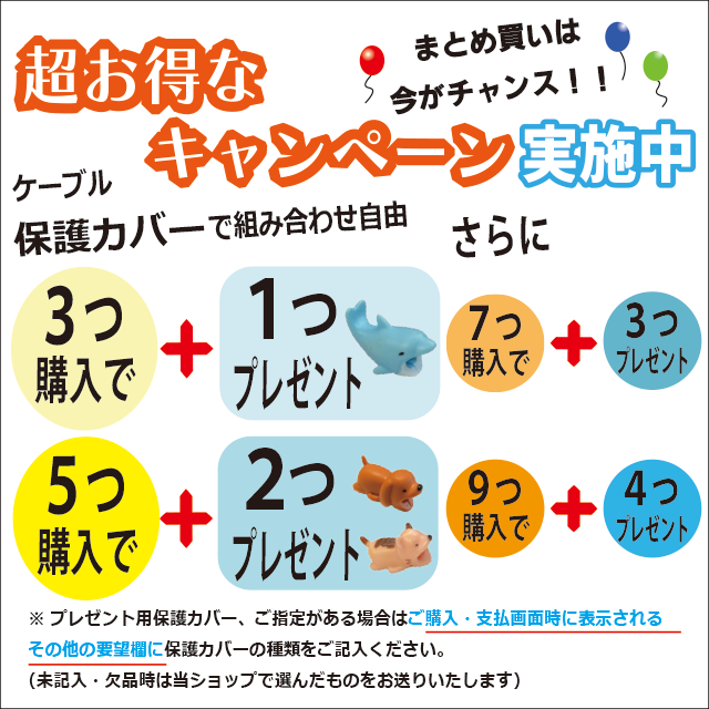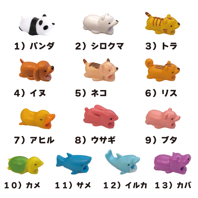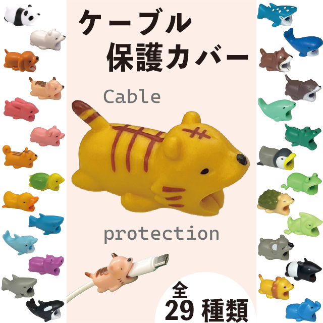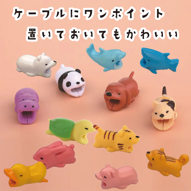 【 3つ購入で+1つプレゼント! 】 アニマル ケーブル 保護 カバー プロテクター 断線 防止 動物 かわいい 【 商品レビュー記入で ポイント 10% 還元 】