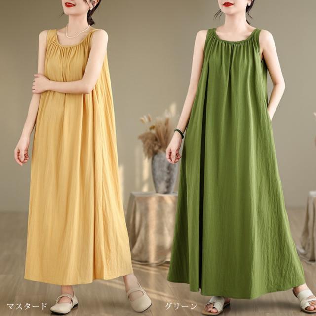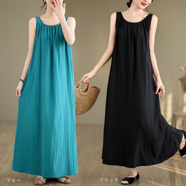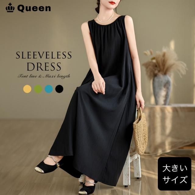 大きいサイズ レディース ノースリーブワンピース 無地ワンピ Aライン フレア 夏 (12020)