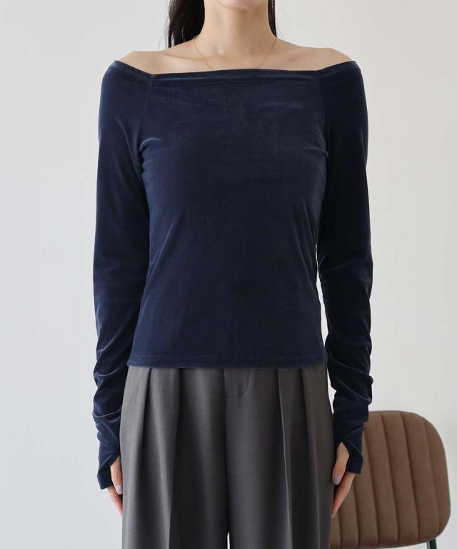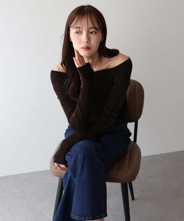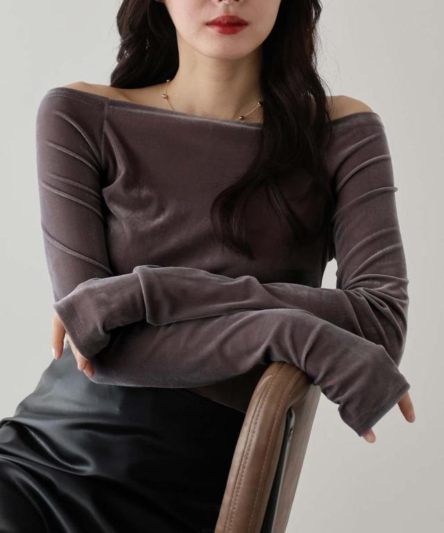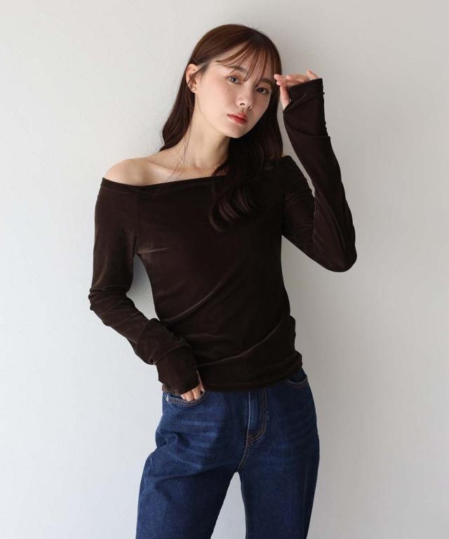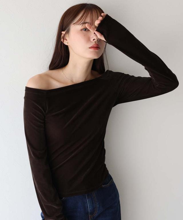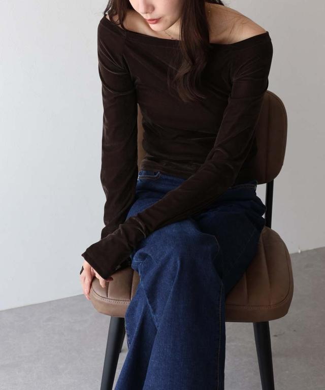 シアーベロアオフショルTシャツ