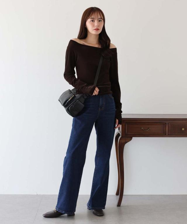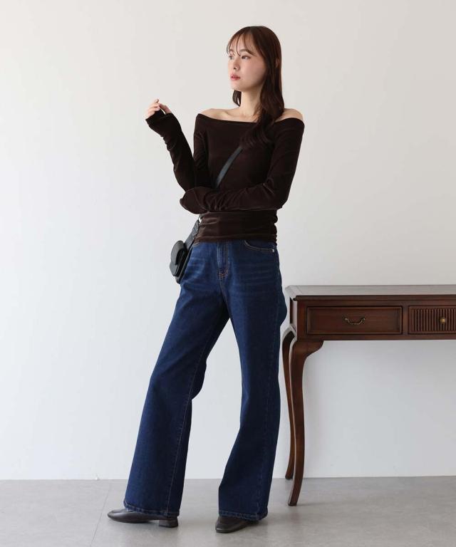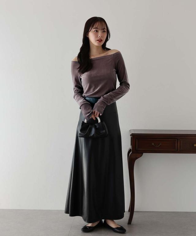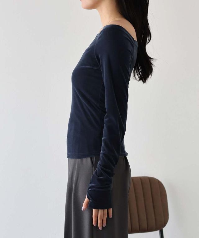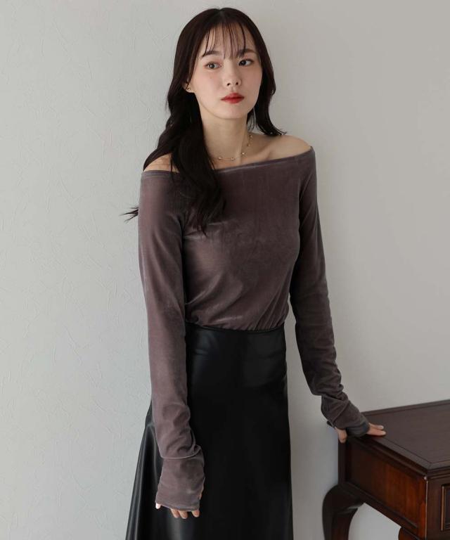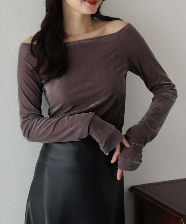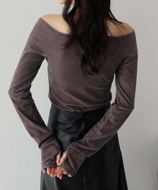 シアーベロアオフショルTシャツ