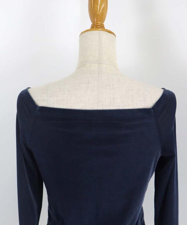 スッキリと開いたネックは、デコルテから肩のラインまで綺麗に魅せ女性らしい印象に演出してくれます。