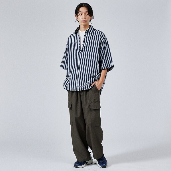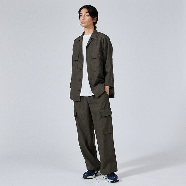 同素材のミリタリーシャツ(品番:00480010009)もあり、セットアップとしても着用できます。