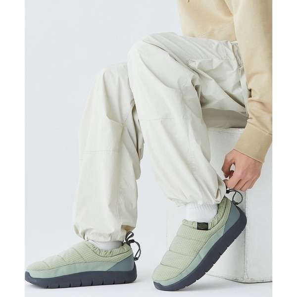 中綿キルティング仕様で足元から温かみをプラスしてくれるモダンスポーティーなスリッポン。履き口のドローストリングを使って手軽にフィット感を調節可能です。やや厚底のシルエットで屋外でも屋内でも快適に過ごせ、シーズンムード高まるペア。