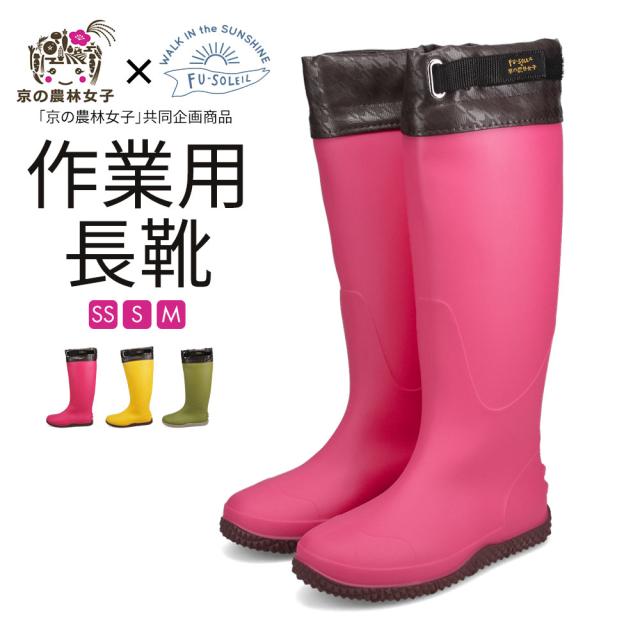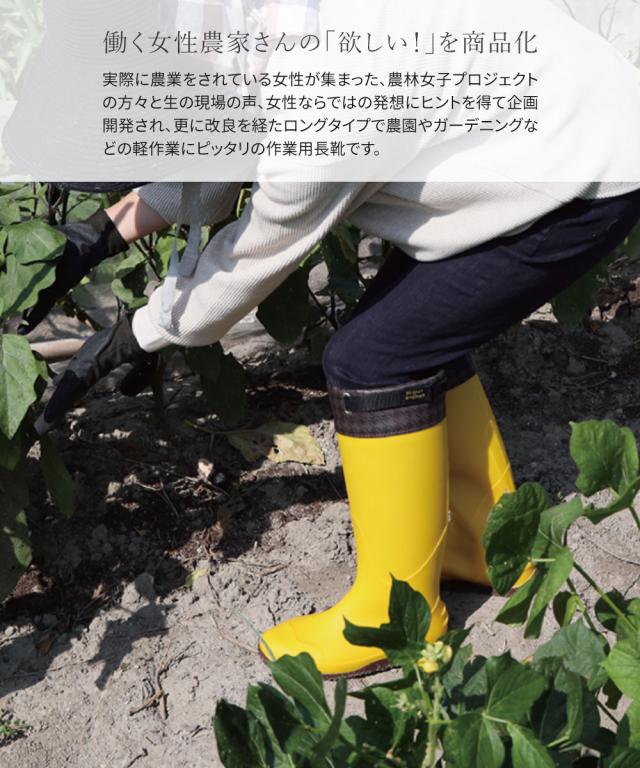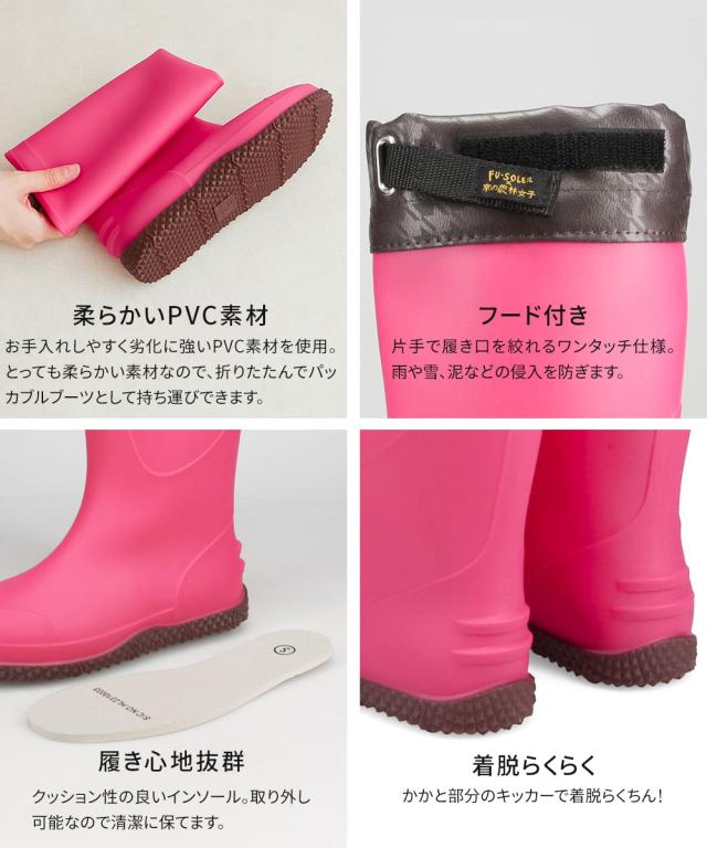 長靴 ガーデニング 農作業 農業 雨の日 PVC底 フード付き長靴 フラット底 レディース長靴 作業長靴 京の農林女子