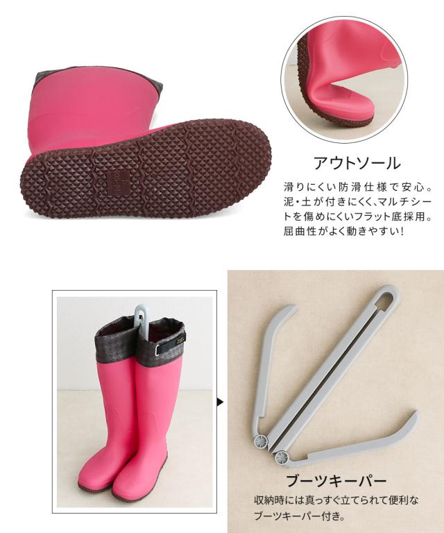 長靴 レディース 農作業 作業用 軽量 フード付き ロング ガーデニングブーツ おしゃれ 軽い 滑りにくい 防滑 防水 柔らかい パッカブル 履きやすい 歩きやすい ガーデニングシューズ 畑仕事 レインブーツ 小さい 大きい ブーツキーパー付き ピンク イエロー グリーン fu5009