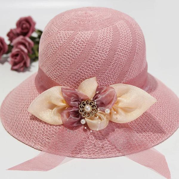 女性のための日焼け止め帽子 大きなつばのビーチキャップ 女の子の蝶ネクタイリボン 屋外 夏 2021
