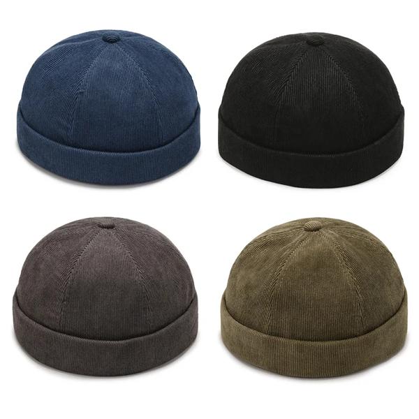 男性のコーデュロイ縁なしドッカー帽子女性秋無地ビーニーキャップ圧延カフ港帽子漁師家主帽子