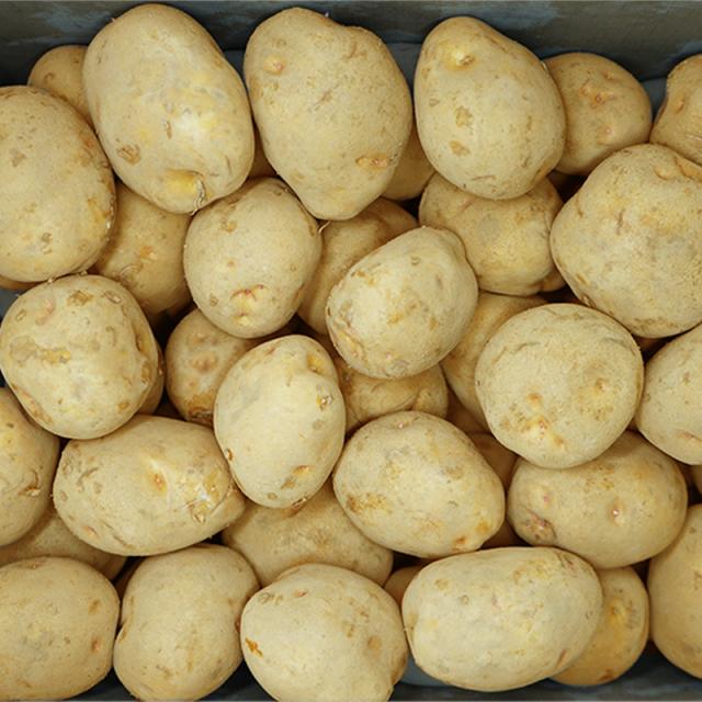 男爵薯とともに現在日本の2大品種として知られています。日本には大正時代初期にアメリカを経由して北海道に導入され、各地に広がりました。つるりとした長卵形で、目が浅く果肉色は黄白色。しっとりきめの細かい粘質で煮崩れしにくいため煮物に適しています。