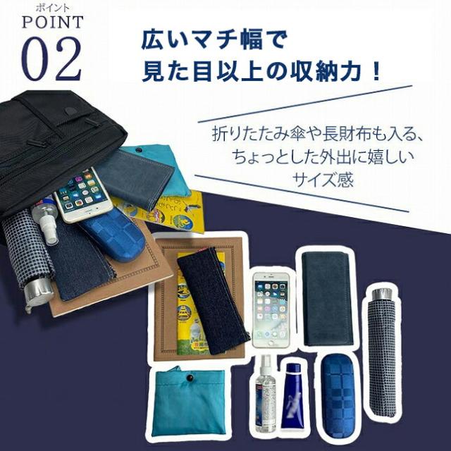 マチが広めのメイン収納とたくさんポケットを兼ね備え使いやすさ抜群