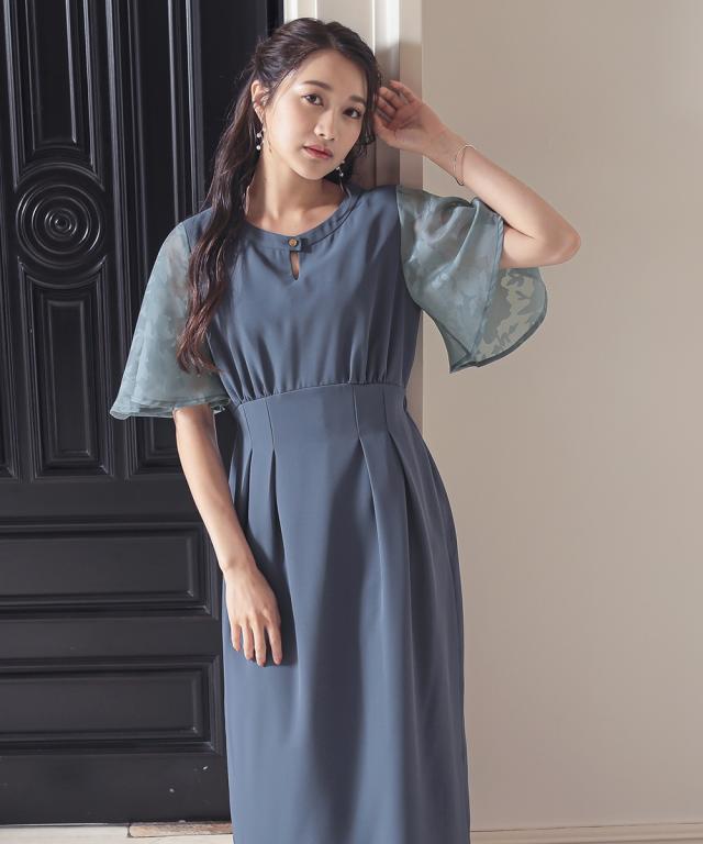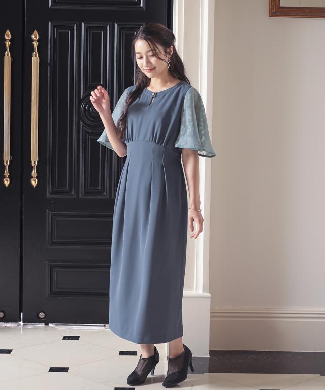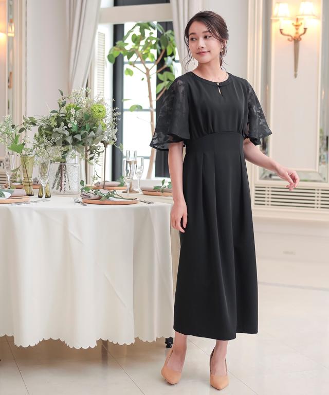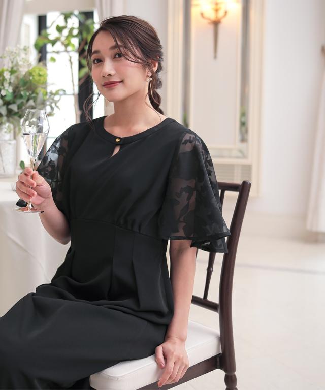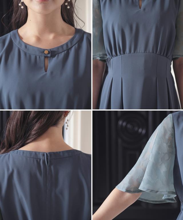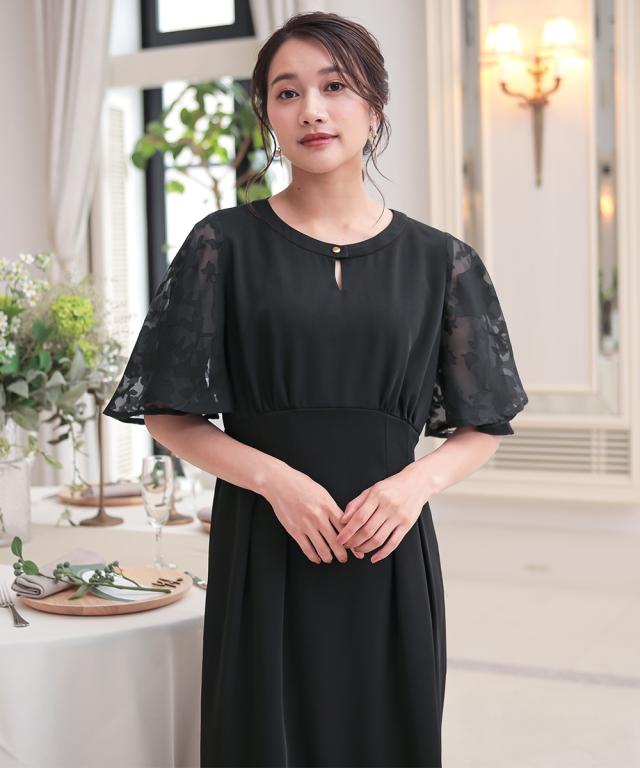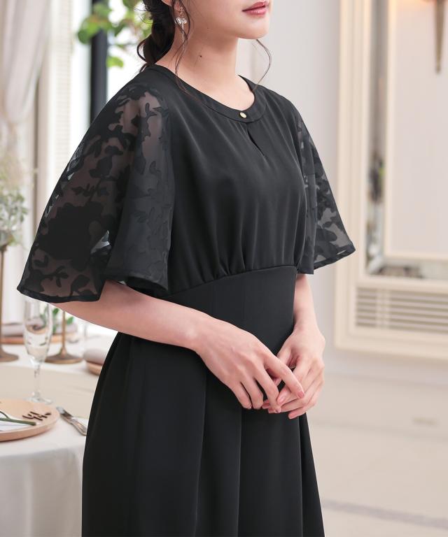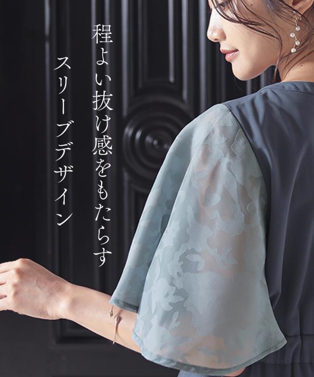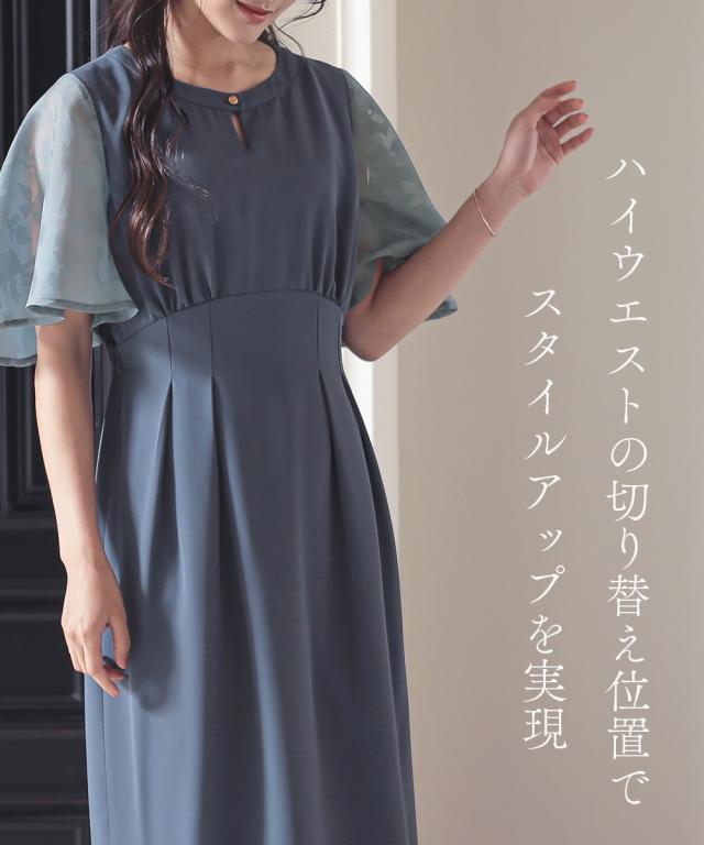 フワッとした花シルエット柄のボリューム袖が目を引くワンピースドレス。 ●こだわりポイント 程よいIラインの綺麗なシルエットが大人らしい印象に。 袖の珍しい花シルエット柄がオシャレ度をぐっと引き上げます。 首元のキーホールネックが抜け感を演出。 タック入りのウエストは後ゴム入りで着心地抜群です。 ●体型カバーポイント ウエストの切り替え位置を高くすることで脚長効果に。 デザイン袖の透け感は華奢見せや二の腕カバーが期待できます。 ●おすすめ着用シーン 【結婚式】【二次会】【謝恩会】【同窓会】【お食事会】【お呼ばれ】【セレモニー】【演奏会】など幅広いシーンで着用いただけます。 ※注意コメント デザインによりサイズ感が異なりますので、詳しい仕立てサイズ表をご確認ください。 お客様のパソコン・スマホのモニターや照明等により、実際のお色と多少異なるように感じられる場合がございます。 ご了承ください。