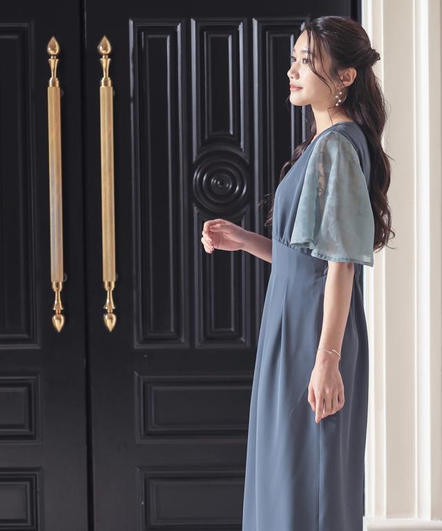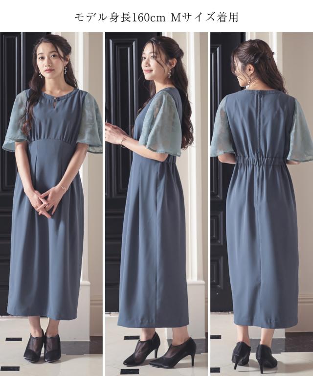パーティドレス ワンピース レディース 結婚式 パーティー ドレス ウエスト タックIライン 有 二次会 披露宴 お呼ばれ フォーマルドレス M/L ニッセン nissen