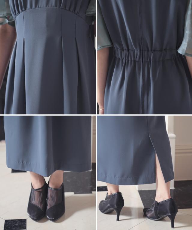 【結婚式・パーティードレス】ウエストタックIラインワンピースドレス
