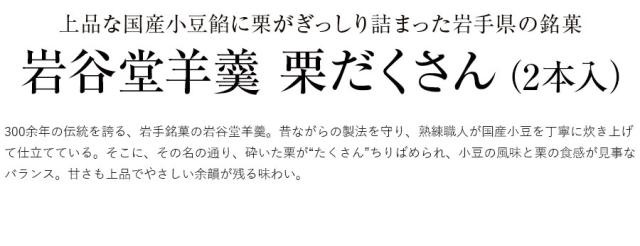 岩谷堂羊羹 栗だくさん(2本入) 栗羊かん 国産小豆 和菓子 回進堂 岩手県 銘菓 ギフト 贈り物 歳暮 中元 お礼 お返し お祝い 送料無料