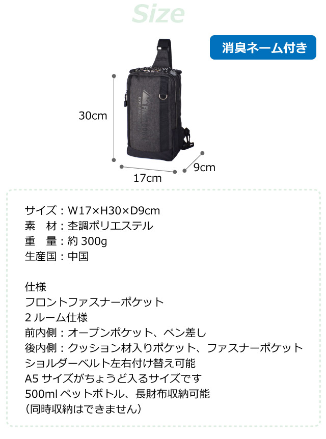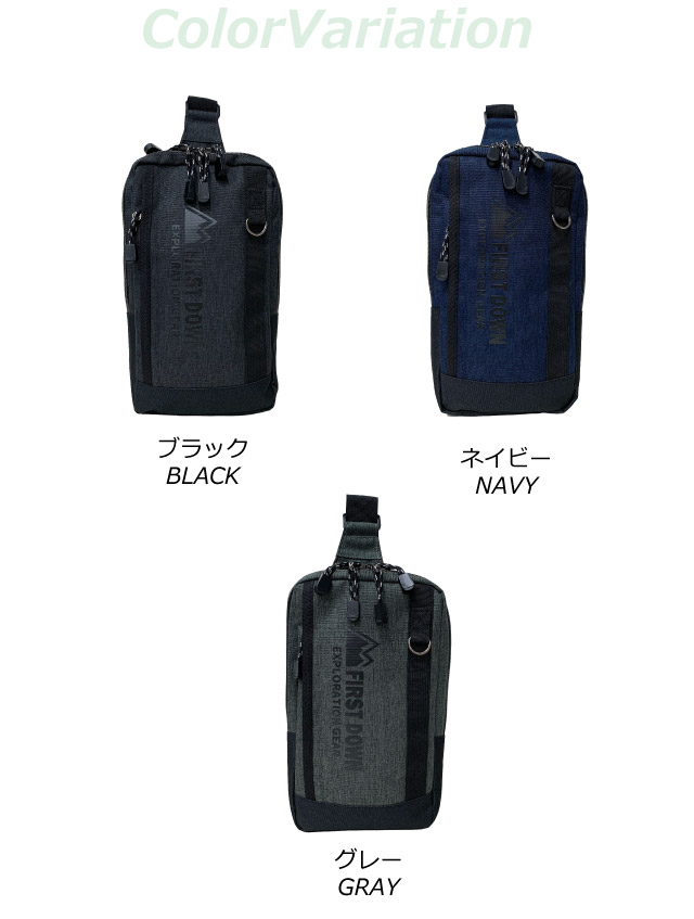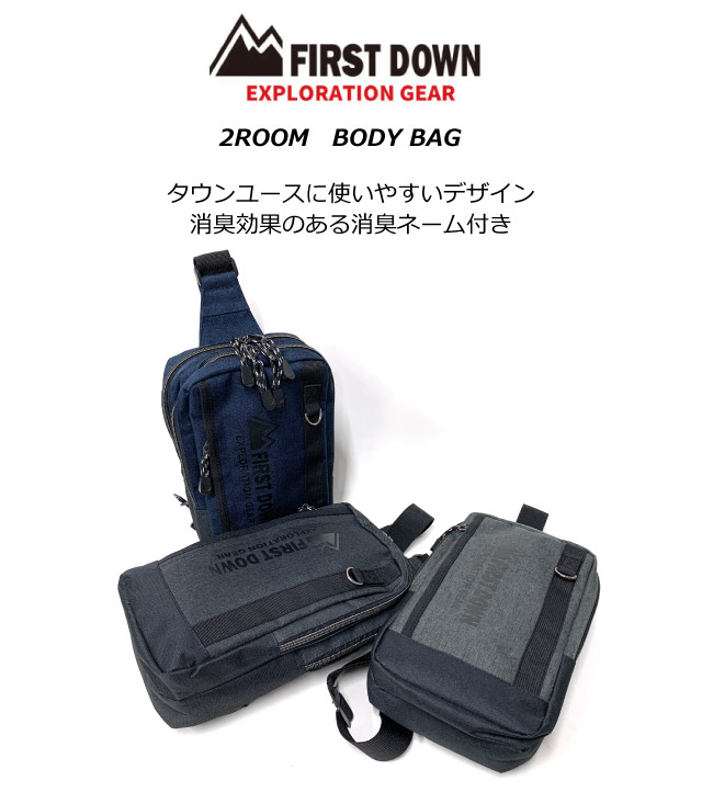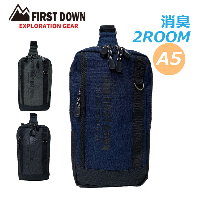 メンズ ボディバッグ おしゃれ かっこいい FIRST DOWN 2ルーム ボディバック 消臭 33052 A5サイズ対応 ボディーバッグ メンズ 男性用 ワンショルダーバッグ 肩掛け 斜めがけバッグ ブラック ネイビー 黒 紺 グレー 旅行 サブバッグ 大人 メンズバッグ 斜め掛けバッグ 男子