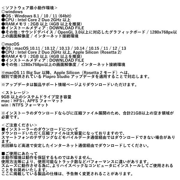●CPU : Intel Core 2 Duo 2GHz 以上, Apple Silicon (Rosetta 2)
