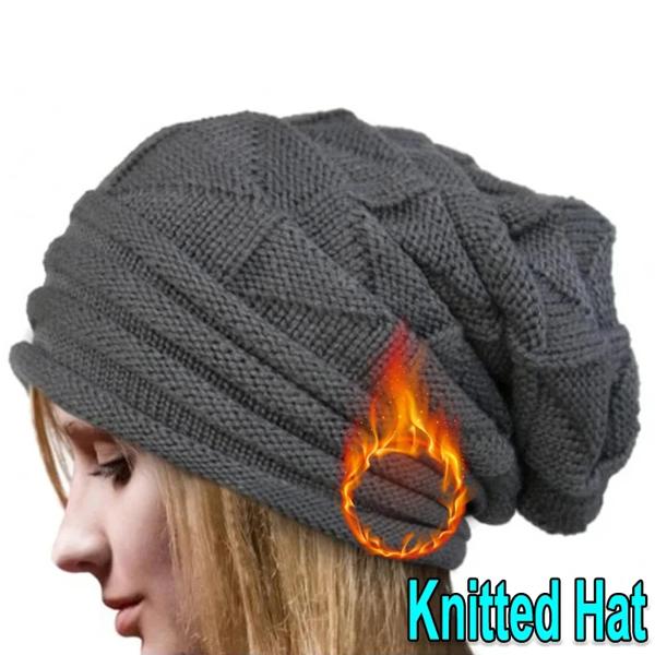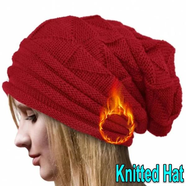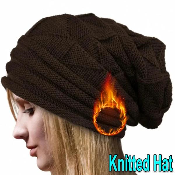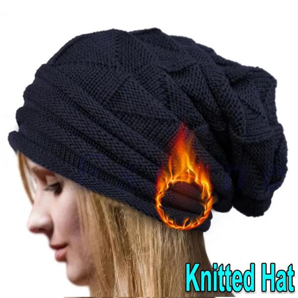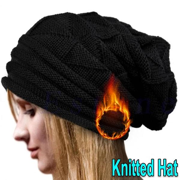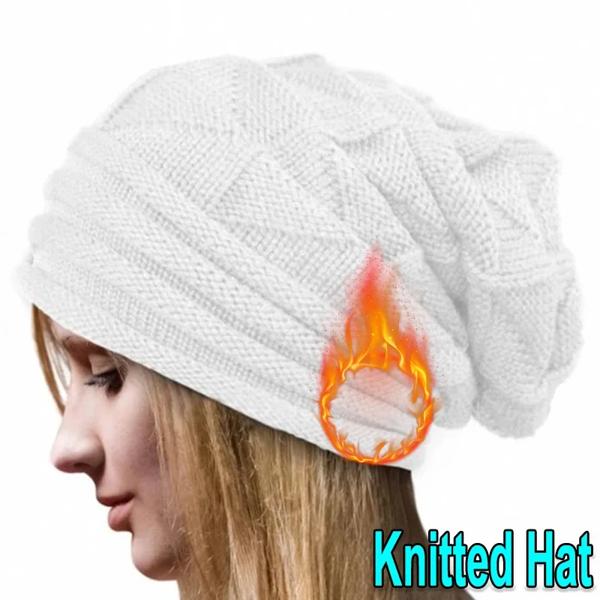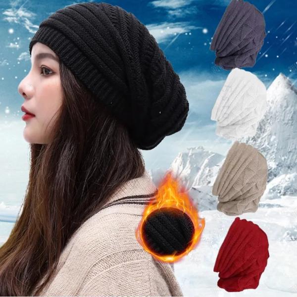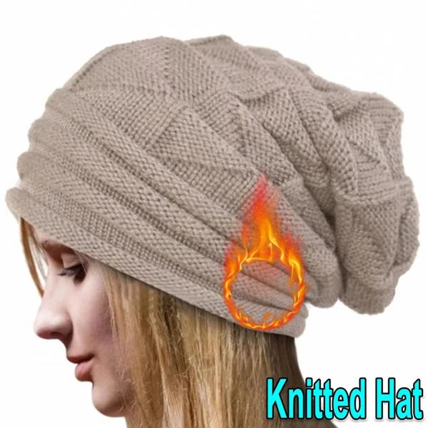 女性のbaggy Slouchyニットビーニーの帽子 クラシックなスカリー 女性の折りたたみ式ウールキャップ イヤーウォーマー ボンネットセット 冬