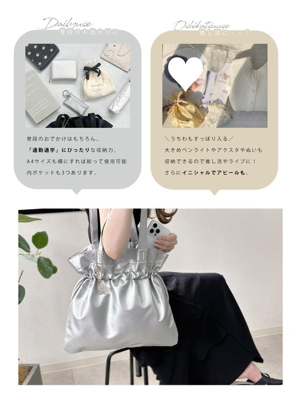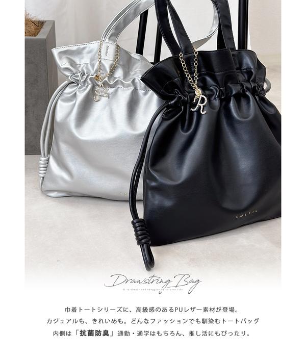 【選べるイニシャルチャーム付き】トートバッグ キャンバス地 抗菌 防臭 PUレザー 巾着 バッグチャーム 通勤 通学 A4 大きめ 大容量 レディース 鞄 かばん カバン うちわ かわいい おしゃれ オタ活 送料無料 プレゼント ギフト
