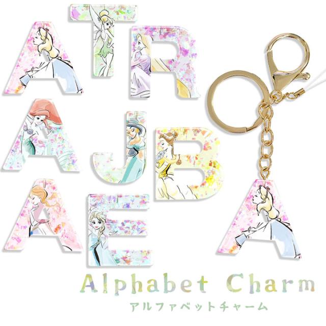 アルファベットチャーム disney ディズニー バックチャーム キーリング ストラップ アリス ティンカーベル ラプンツェル アリエル ジャスミン ベル アナ エルサ メール便送料無料