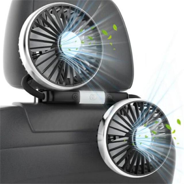 送料無料!車 扇風機 車載扇風機 車用扇風機 双頭車載ファン ツーファンタイプ USB給電 3段階風量 低騒音 360°角度調整可能 ヘッドレストファン 後部座席に送風 空気循環 DC車用 取付簡単 長配線 クリップ付き 夏対策 熱中症対策 配線延長バージョン 取付簡単