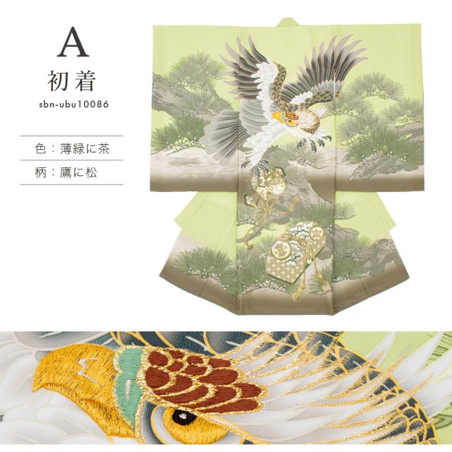 産着 男の子 販売 初着 長襦袢付き 緑 白 黒 青 ベージュ 鷹 兜 鳳凰 虎 男児 掛け着 うぶぎ 祝着 お宮参り ポリエステル お祝い 赤ちゃん 送料無料