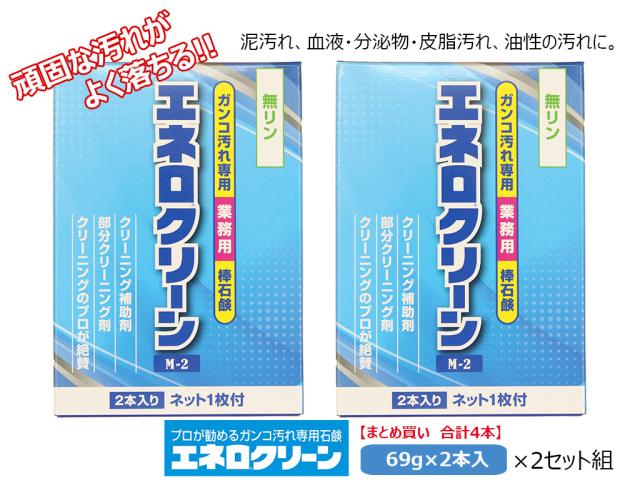 洗濯石鹸 棒石鹸 頑固汚れ専用 泥汚れ 油汚れ 白さにこだわり 洗いのプロもおすすめ ネット付「エネロクリーンM2 69g×2本入」2セット組