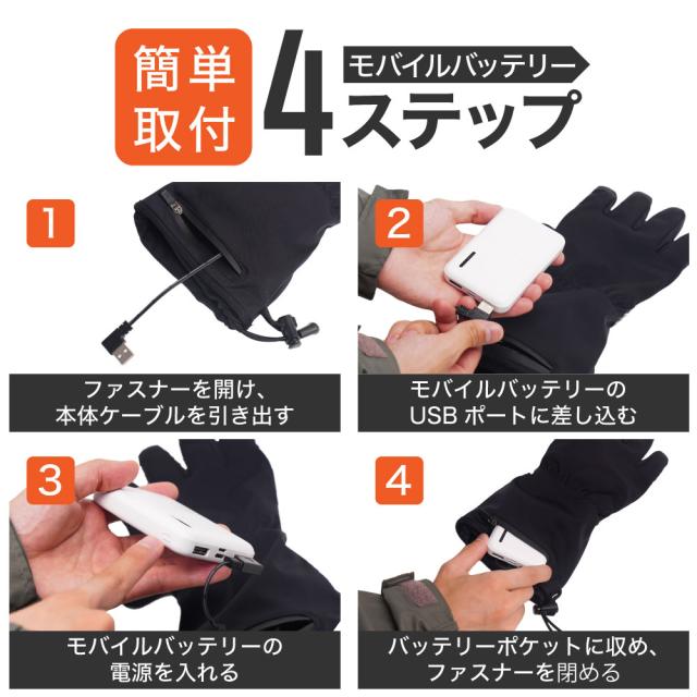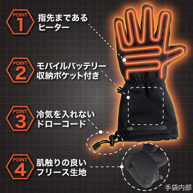 USB式ヒーター手袋「でんき手ぽっか」ヒーター内蔵で指先までしっかり温まる、ケーブルレスのヒーター手袋