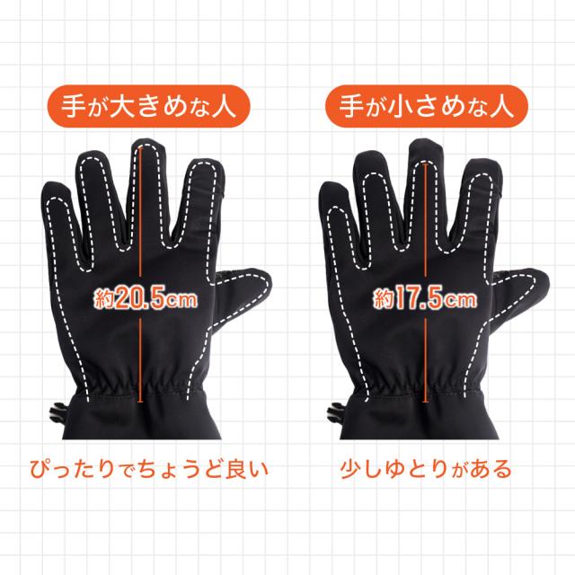 甲部:ナイロン85%、スパンデックス15%掌部:ポリエステル100、裏地:ポリエステル100%