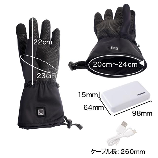 手長22×手囲い23(cm)手首まわり:20〜24(cm)付属バッテリー:幅64×奥行98×高さ15(mm)